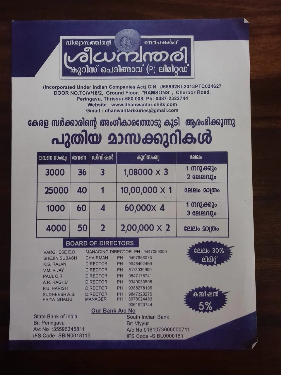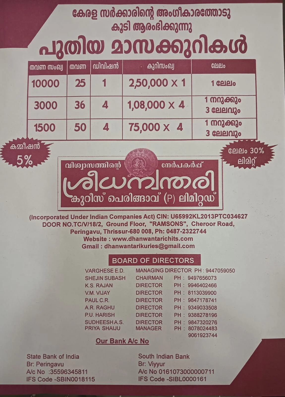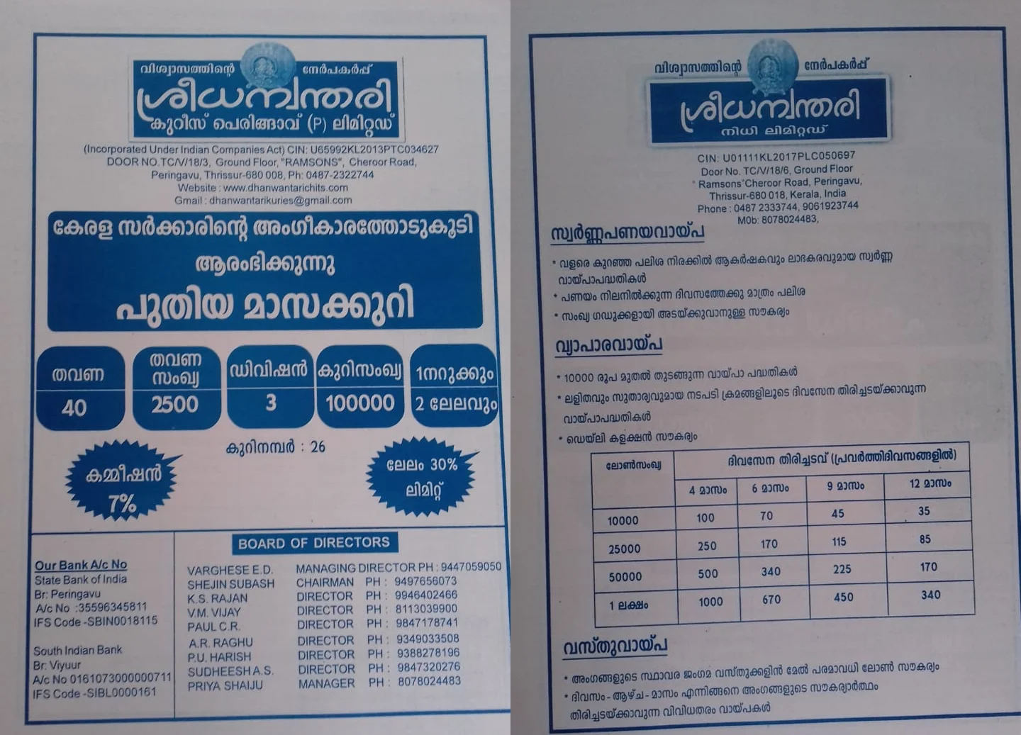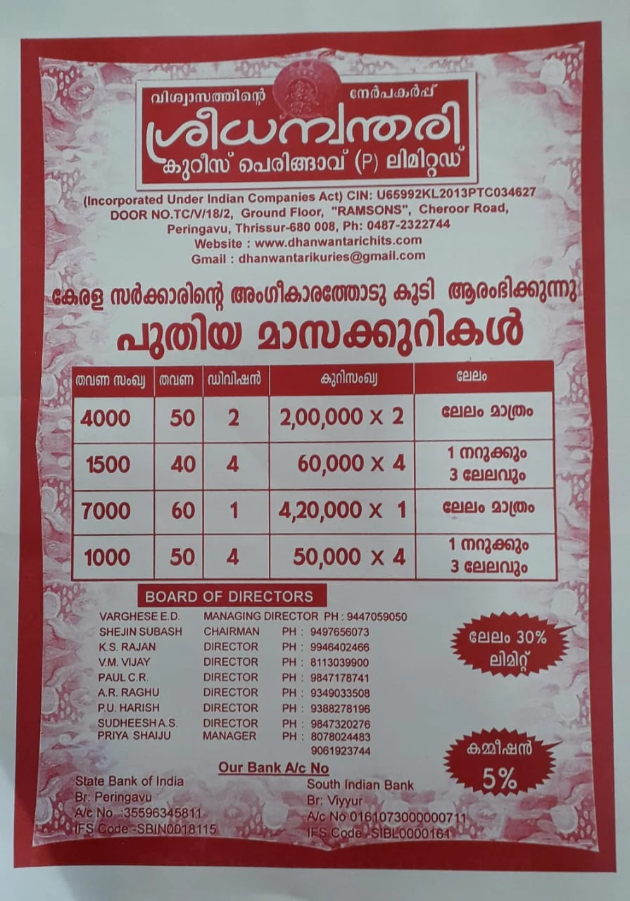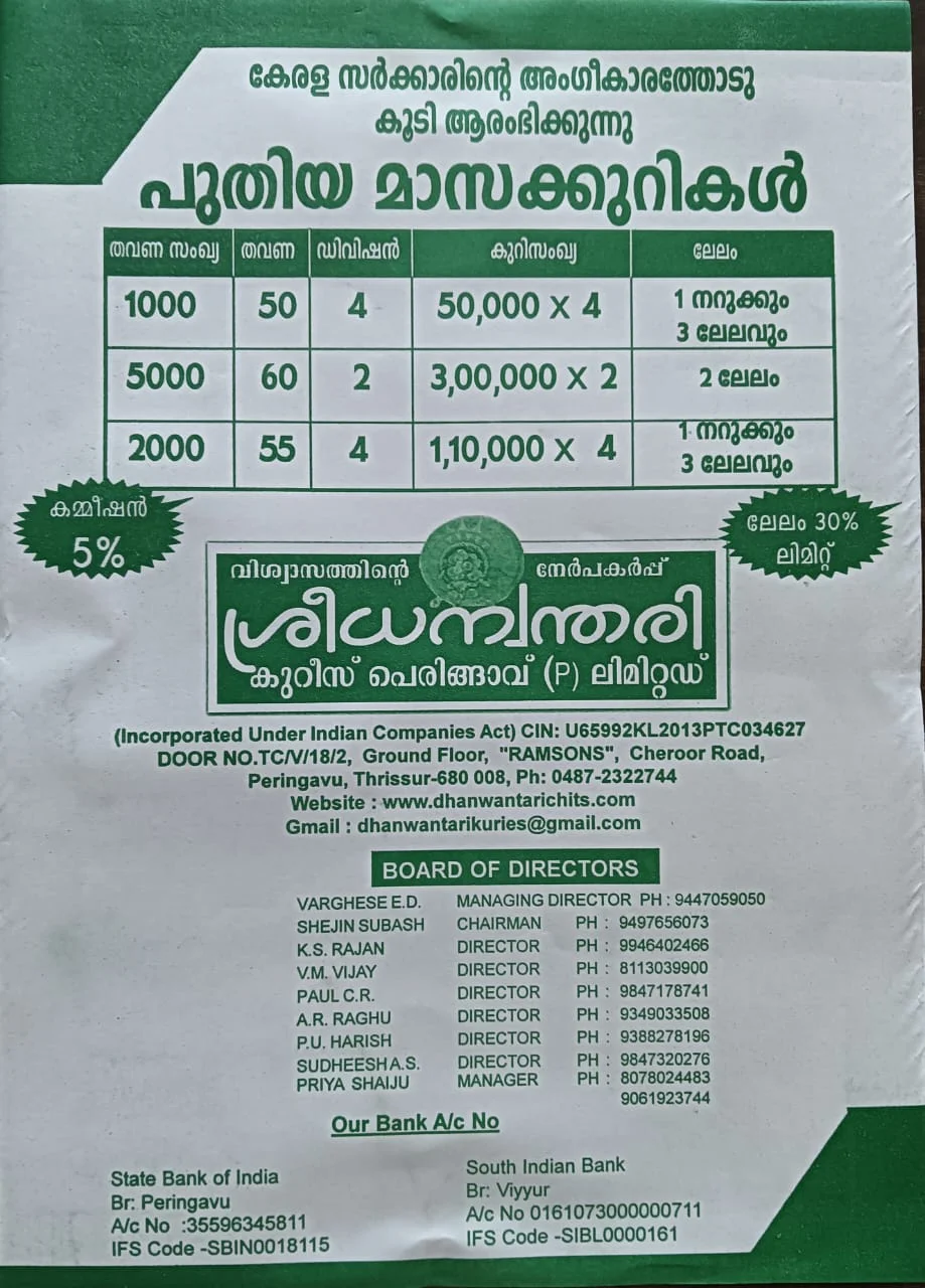 (Incorporated Under Indian Companies Act) CIN: U65992KL2013PTC034627 H.O. രാംസൺ ബിൽഡിംഗ്, പെരിങ്ങാവ്, ചേറൂർ റോഡ് തൃശൂർ - 680 618 Ph. 0487-2322744, +91 807 802 4483
